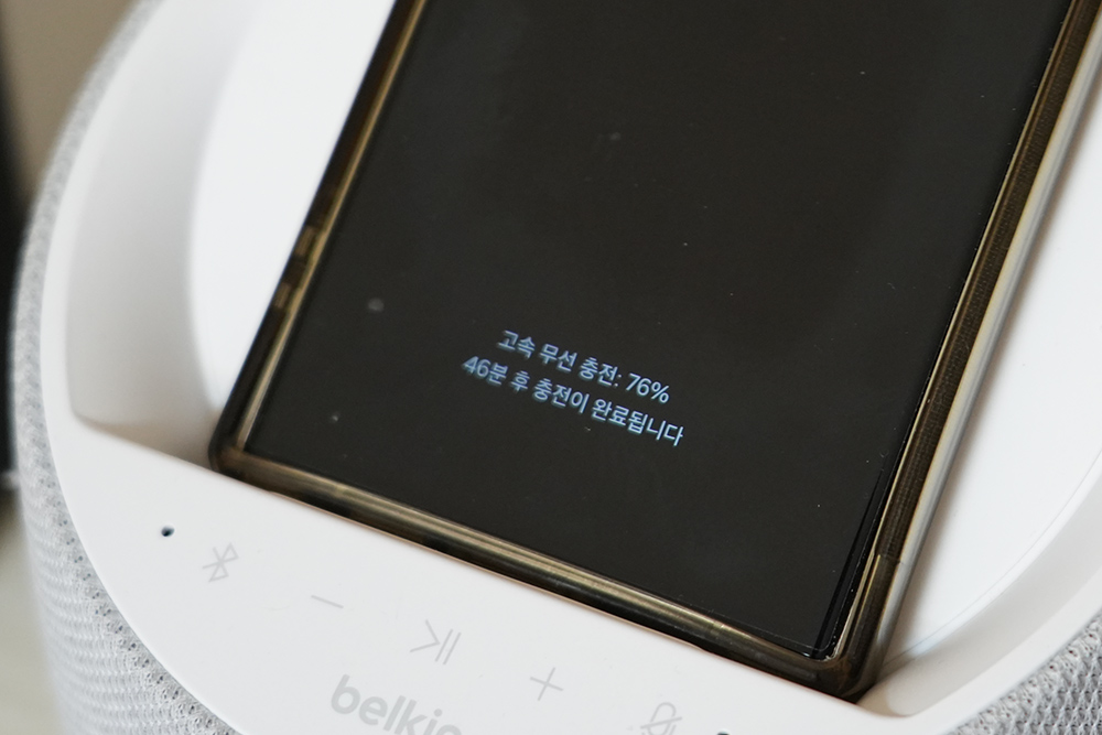 고속 무선충전이 되어서 빠르게 충전 할 수 있습니다. 물론 유선이 빠르겠지만, 무선이 선연결 없이 그냥 올려만 두면 충전이 가능하니 편하긴 하죠.