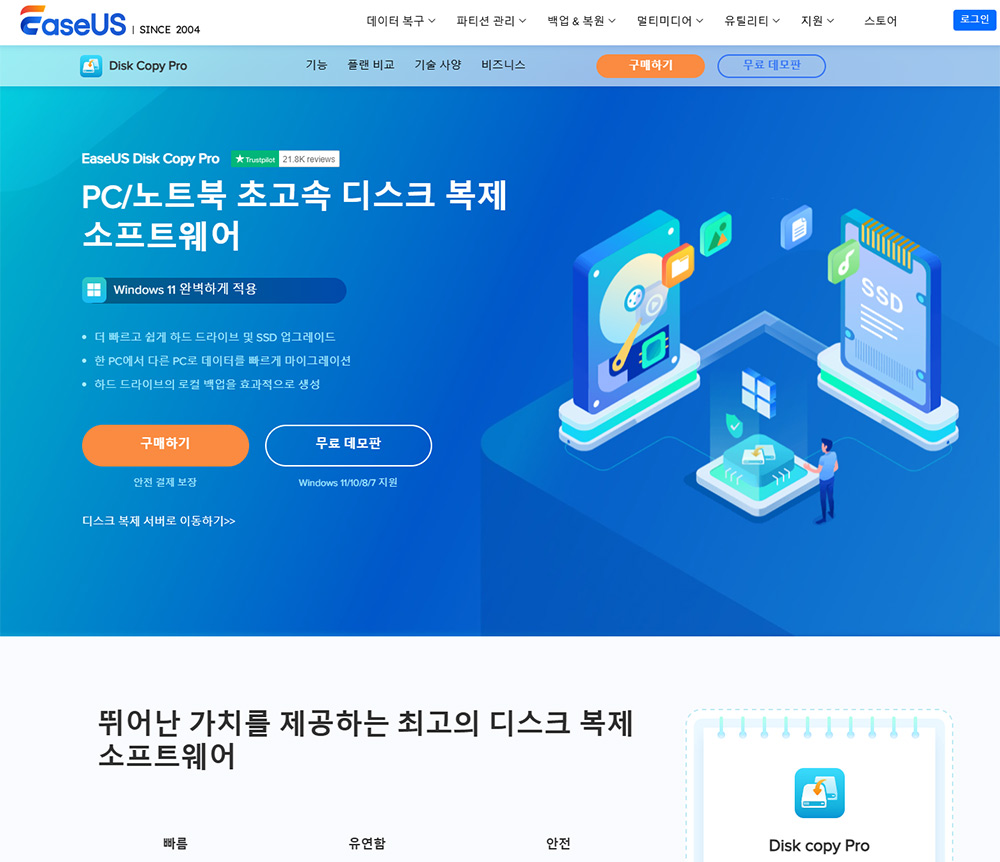 위 링크에서 EaseUS Disk Copy Pro를 간단하게 다운로드해서 사용할 수 있는데요.