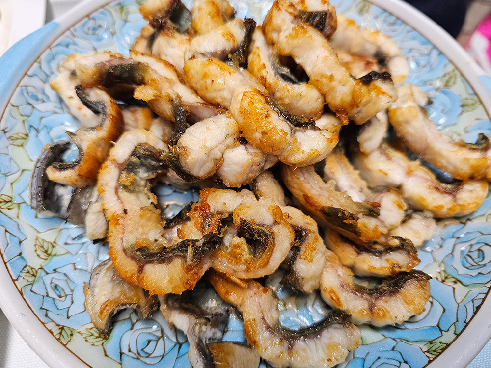 저는 머리는 버리고 장어뼈를 물에 핏물을 씻어내고, 식용유로 튀겨봤는데요. 원래는 전분가루나 튀김가루를 쓰는게 좋은데 없어서 그냥 튀겼구요. 노릇해질때까지 충분히 튀겨줘야 합니다. 좀 튀겨졌겠지 하고 그냥 입으로 물었다가 피비릿내가 ㅠㅠ 잘 튀기면 바삭하고 맛있습니다. 우리아이한테 줘 보니까 엄청 잘 먹더라구요.