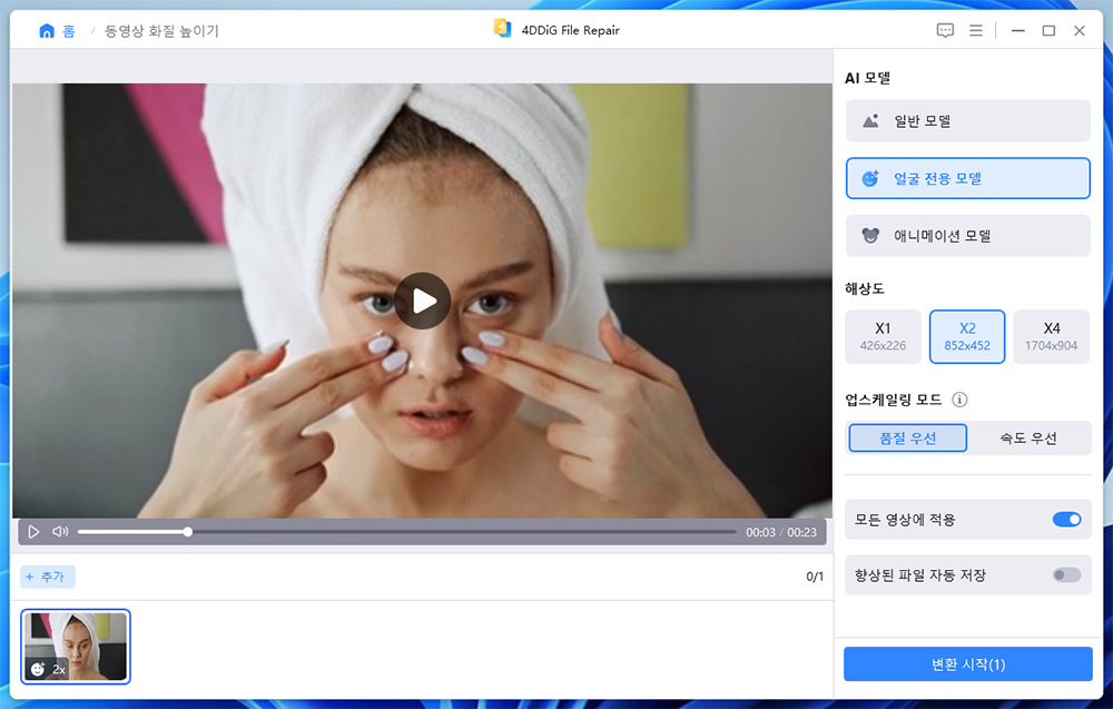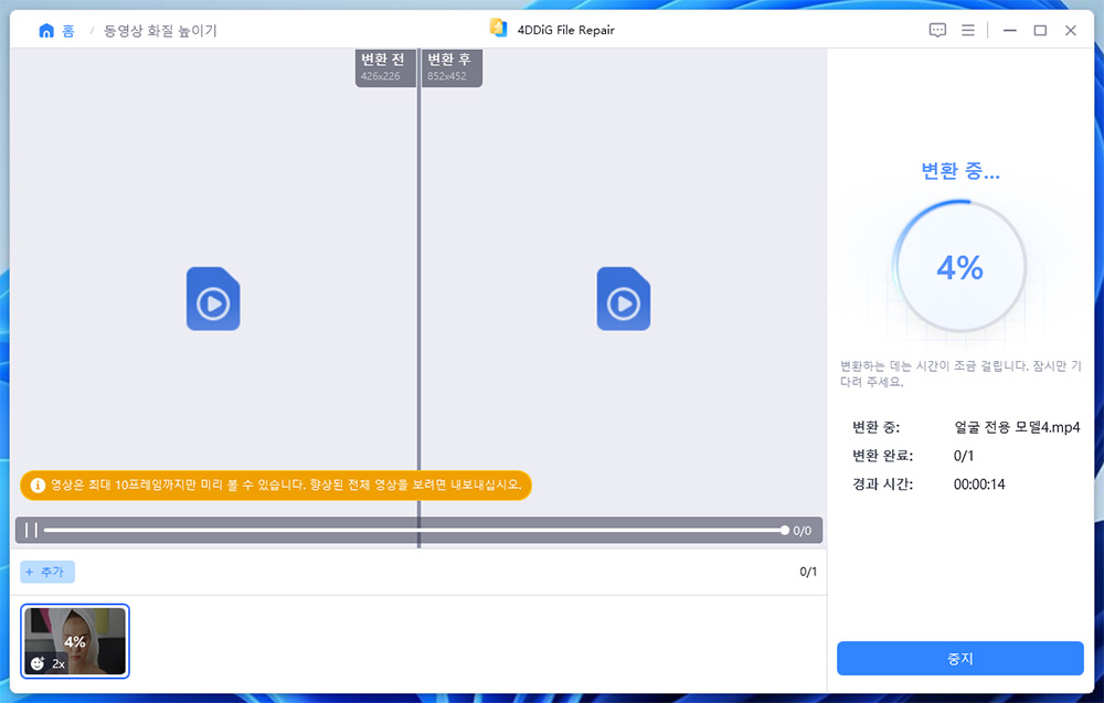 변환시작을 누르면 좀 시간이 걸리면서 화질을 개선하기 위한 초기 작업을 합니다.