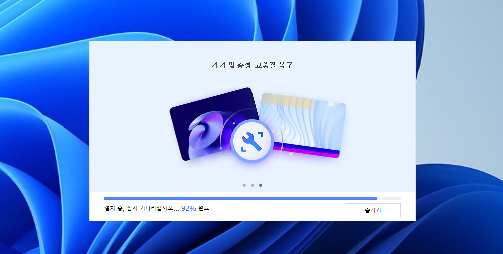 복구 버튼을 누르면 복구가 끝납니다. 복구는 생각보다 빠르게 진행 됩니다.