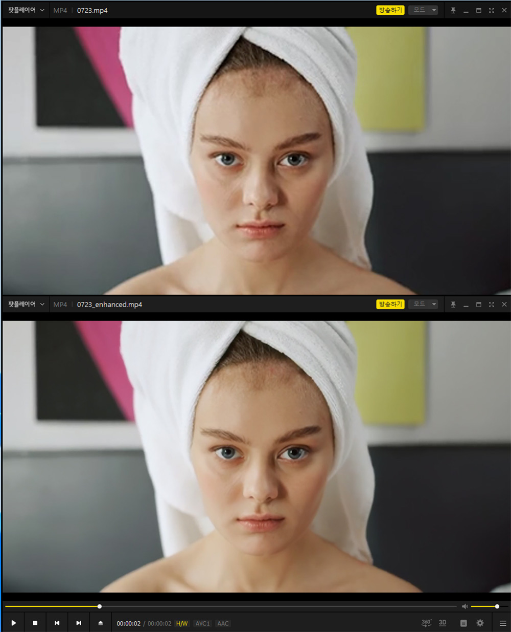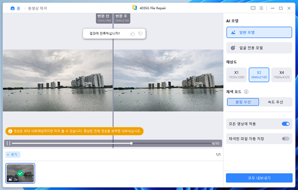 AI 보정을 통해서 영상을 더 깨끗하게 선명하게 만들 수 도 있습니다.