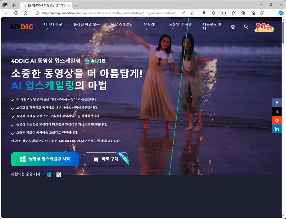[공식] 4DDiG AI 동영상 업스케일링 | AI 기술로 동영상 화질 개선
