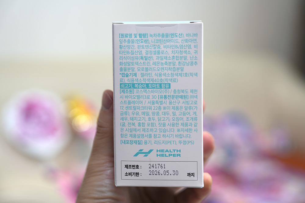 녹차추출물과바나바잎 추출물 및 비타민, 미네랄이 포함된 건강기능식품인데요. 일단 약통이 이쁘게 생겼습니다.