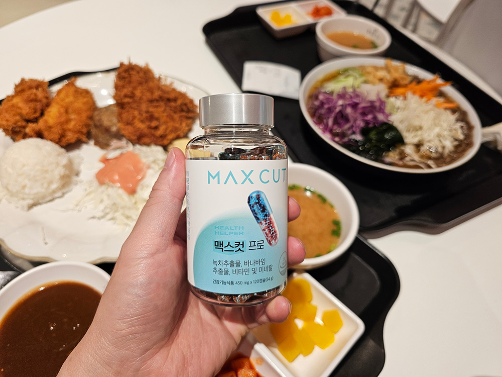 국물이랑 밥도 배부르게 먹고 난 뒤에 맥스컷 프로를 먹어 봤습니다. 처음 먹었을 때는 사실 차이가 크게 느껴지지 않았는데요. 먹자마자 바로 엄청나게 효과가 나타나고 그러면 좋겠지만 꾸준히 먹어야 하나 봅니다.