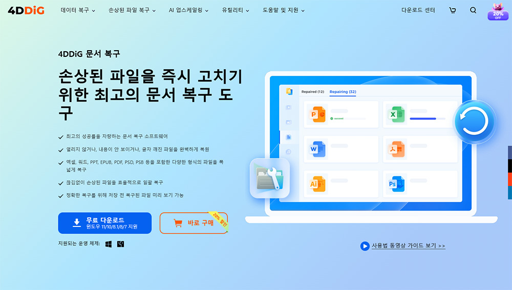 [공식] Tenorshare 4DDiG 문서 복구: 전문적으로 손상된 PDF 및 Office 문서 복구