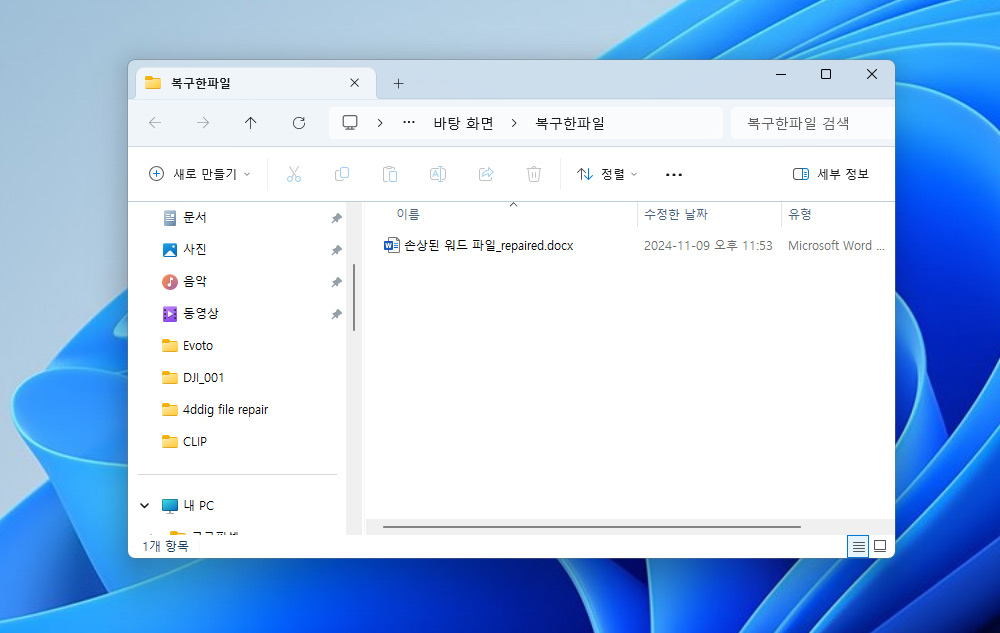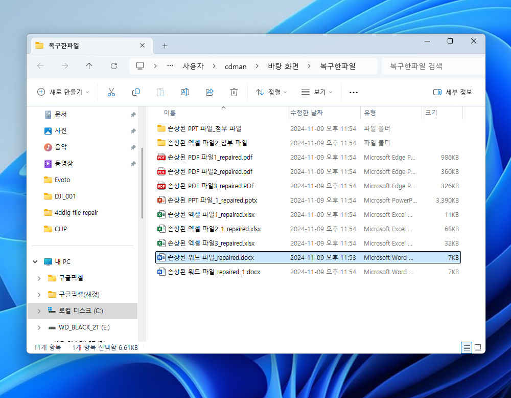 복구된 파일은 파일명 뒤에 repaired라고 이름이 붙습니다.