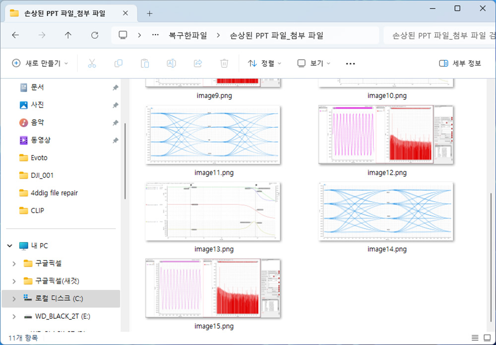 손상된 이미지 파일도 복구가 같이 되었네요. 문서에 같이 추가된 이미지나 이런 파일들도 복구가 됩니다.