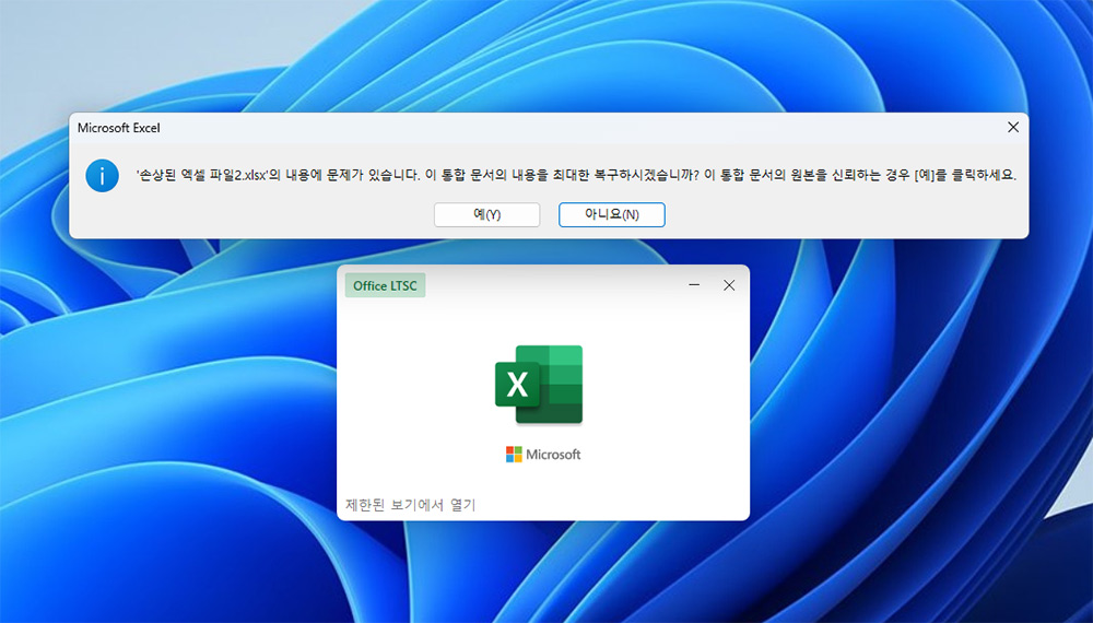 파일 손상되어 열리지 않는 분들은 위 방법으로 복구를 해보세요.