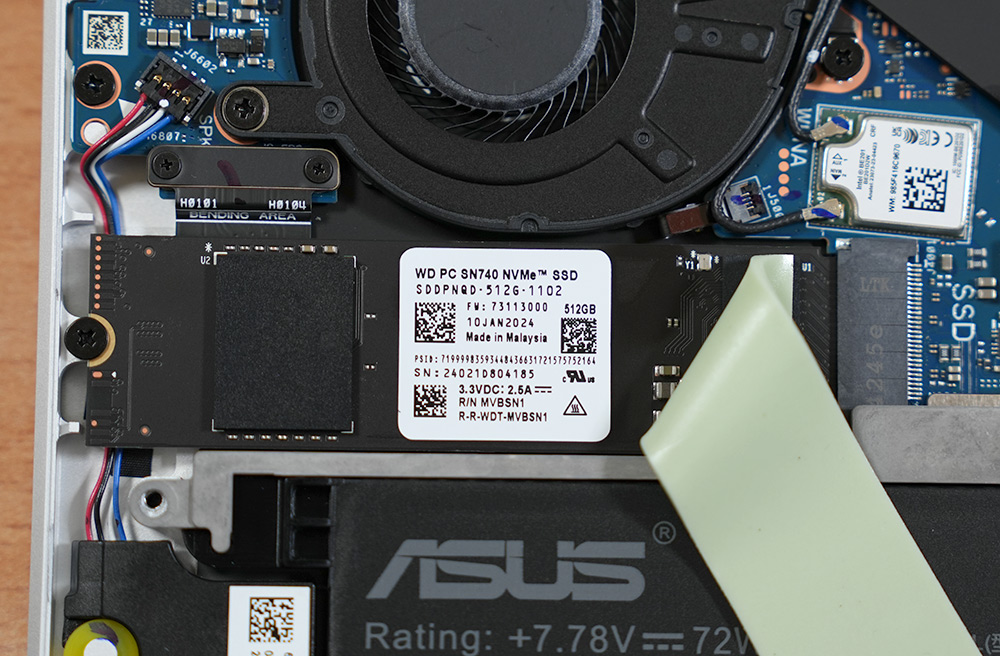 저장장치는 PCIe4.0x4 타입의 WD SN740 512GB가 사용되었습니다. 필요하다면 저장장치를 업그레이드 할 수 있습니다.