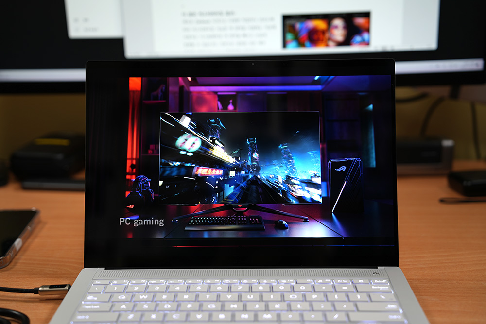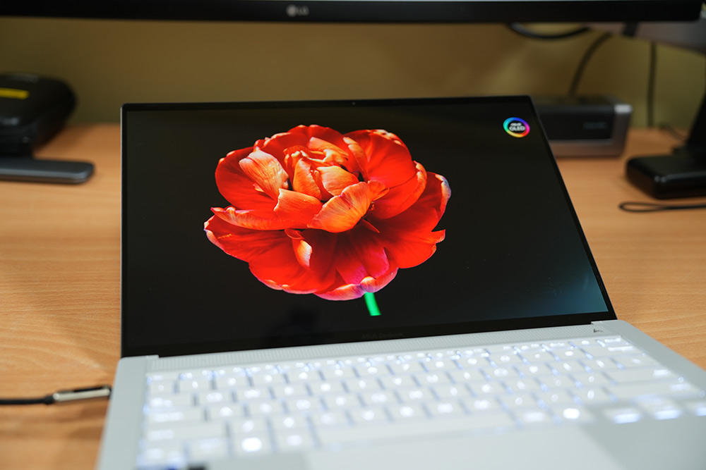 나노엣지 3K 120Hz ASUS Lumina OLED 디스플레이가 적용되었습니다. OLED 특성상 자체적으로 발광하는 소자 때문에 검은색 표현하는 부분에서 강점을 가지고 있는데요. 그리고 120Hz의 빠른 주파수 지원외에도 거의 없다시피한 지연시간 때문에 아주 매끄럽게 영상 표현이 가능합니다.