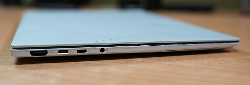 왼쪽 측면에는 HDMI 2.1, 썬더볼트4 2개, 헤드셋단자가 있습니다. 썬더볼트5까지 나와있지만 이것은 상위 버전에 들어갑니다. HDMI와 썬더볼트4 단자를 이용해서 모니터를 2대까지 확장이 가능합니다.