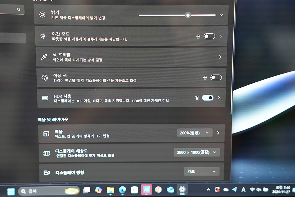 물론 이 설정을 위해서는 HDR 사용을 켜줘야 합니다.