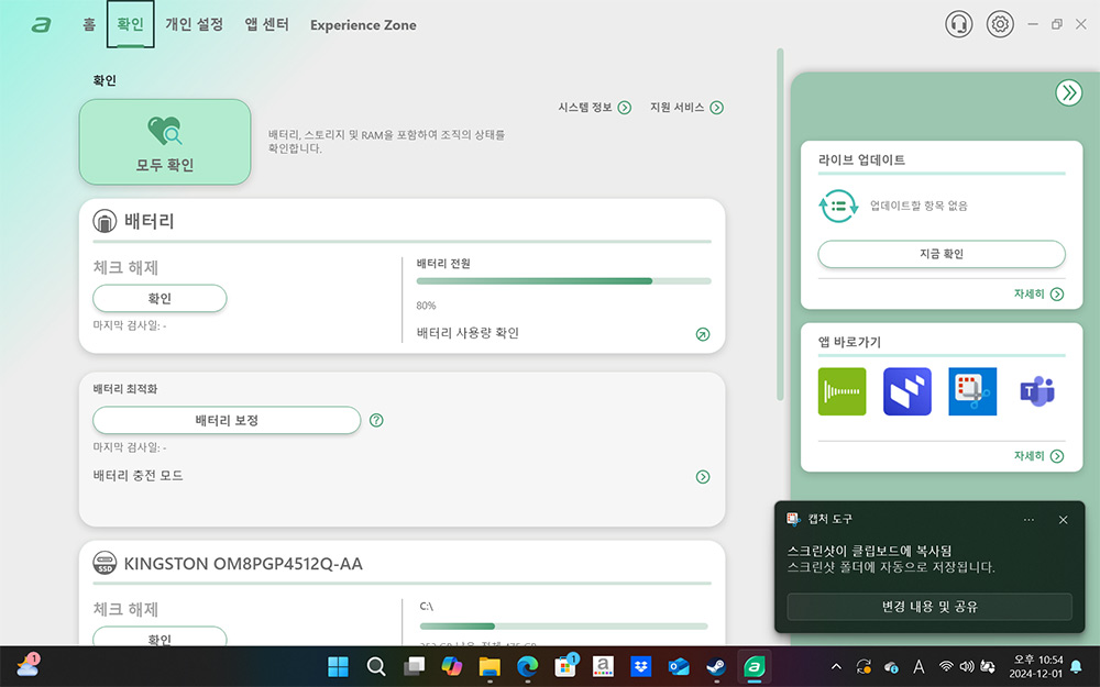 PCIe4.0 타입의 NVMe SSD가 사용되었습니다. SSD 성능은 나쁘지 않은편이고, 그리고 분해하면 추가로 M.2 슬롯이 존재해서 저장장치를 확장할 수 있습니다.