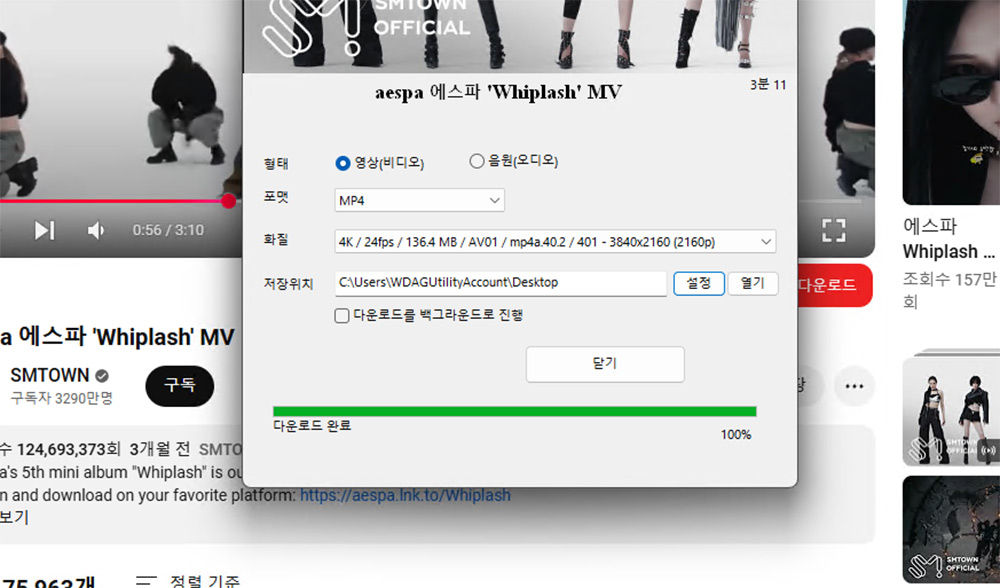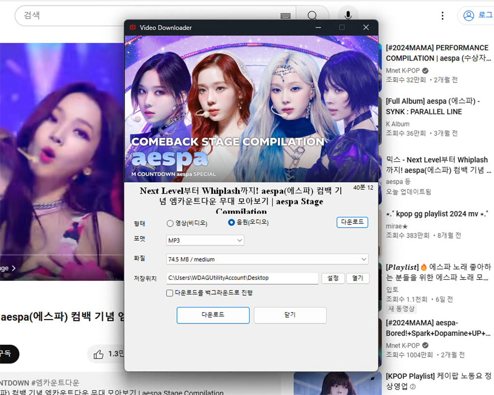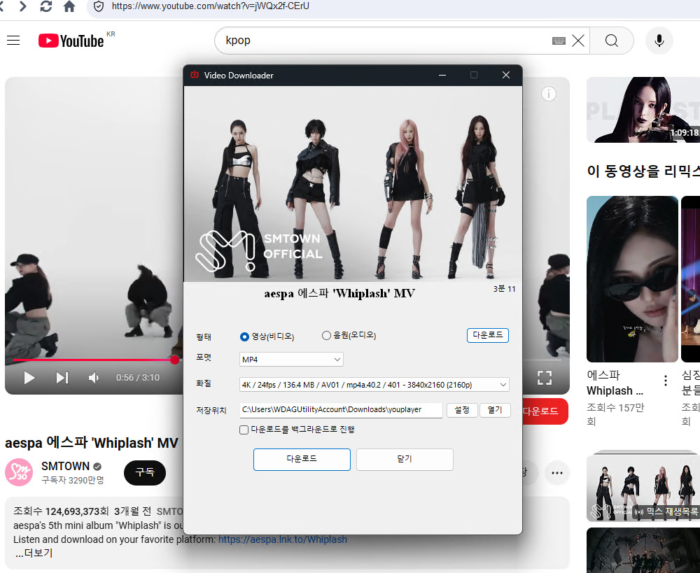 포멧도 선택 가능하고 화질도 선택해서 고화질로 다운로드 가능합니다.