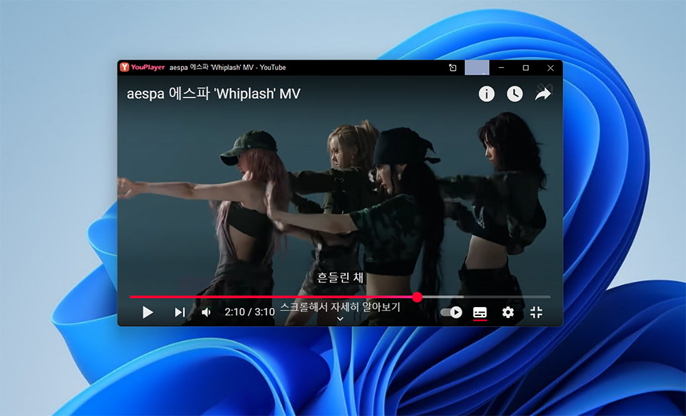 이렇게 하면 유플레이어가 작아지면서 영상 재생에 딱 필요한 부분의 UI만 나타납니다. 보기 좀 더 편하죠.