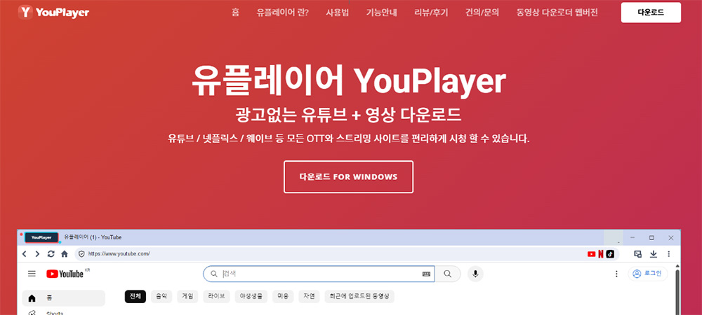 유튜브 영상 다운로드 광고 없이 바로 보기 유플레이어