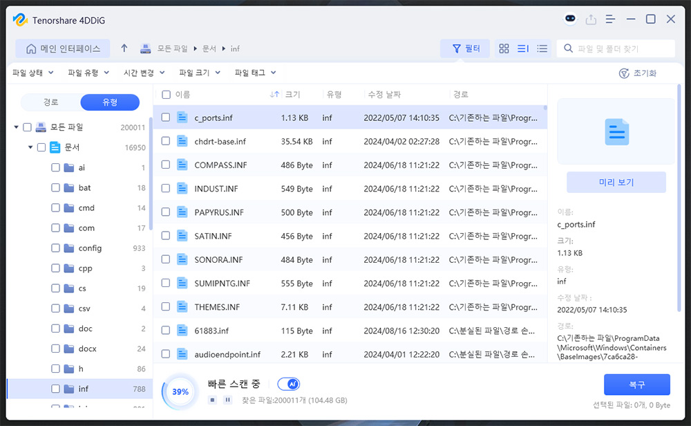 카메라 삭제 파일 복구 한글 파일 복구 4DDiG Windows Data Recovery