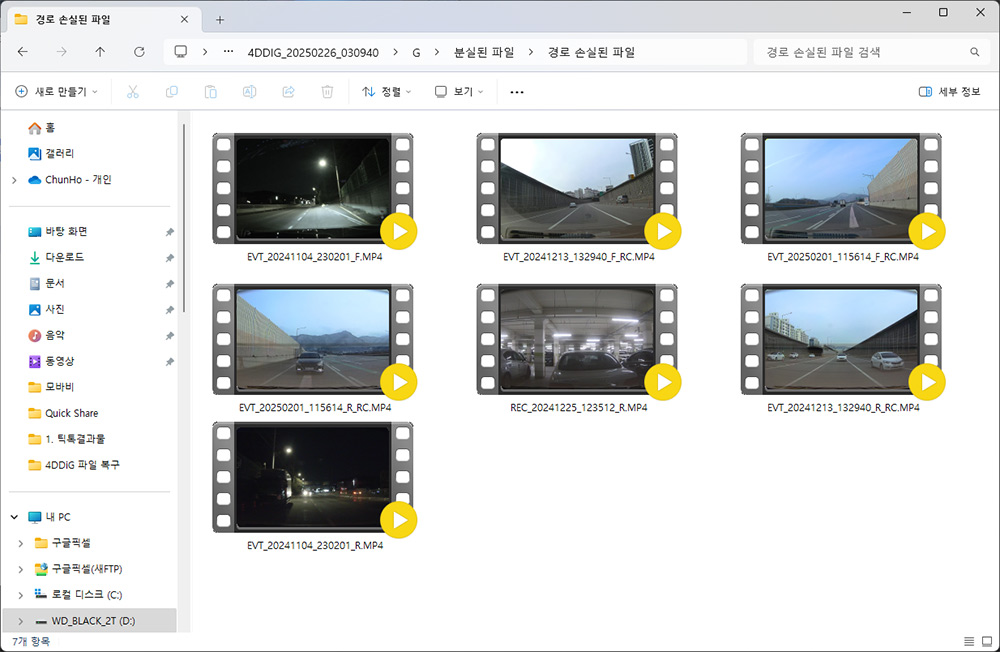 블랙박스 영상이 복구가 잘 됩니다.