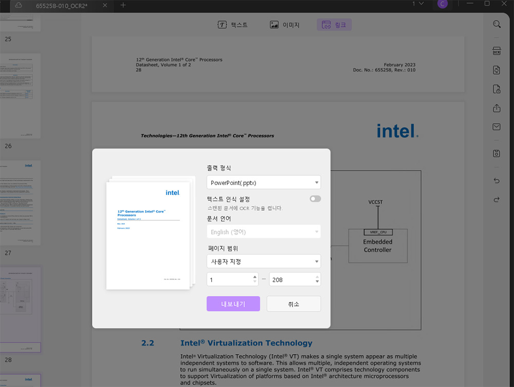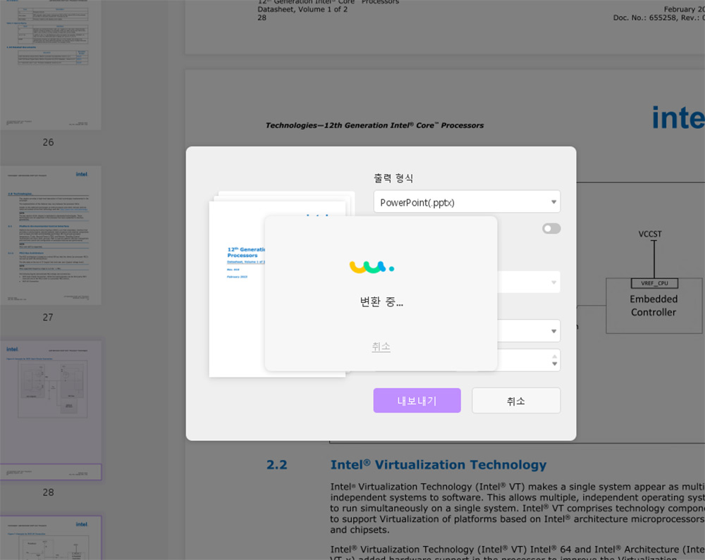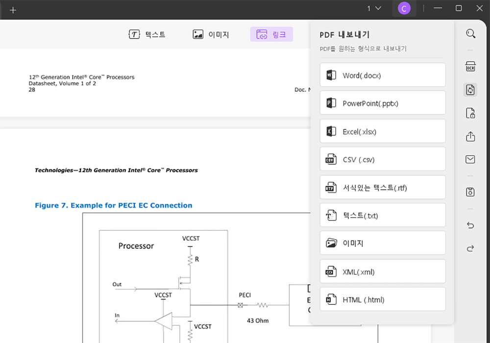 만약 완전히 다른 타입으로 내용을 바꾸고 싶다면, PDF 내보내기를 선택 합니다.