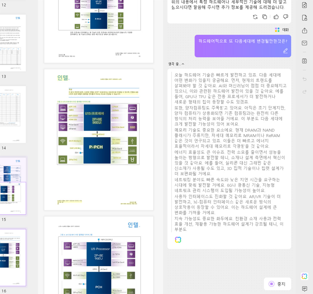 근데 이 문서를 기반으로 앞으로 새로 나올 하드웨어어세 변경될만한것도 물어봤는데요. 근데 여기에서 좀 더 추론적인 대답을 원하면 딥 씽킹을 선택하면 됩니다. 그러면 DeepSeek R1 기반으로 분석해서 알려줍니다. 처음에는 설마 이것까지 대답해줄까 싶었는데...