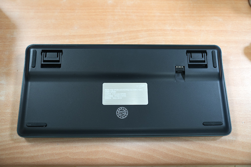 전체적으로 낮은 키보드 형태인데요. 아래에 2단의 다리를 펼쳐서 각도를 조정할 수 있습니다. 다리를 완전히 펼치면 생각보다 높아집니다.