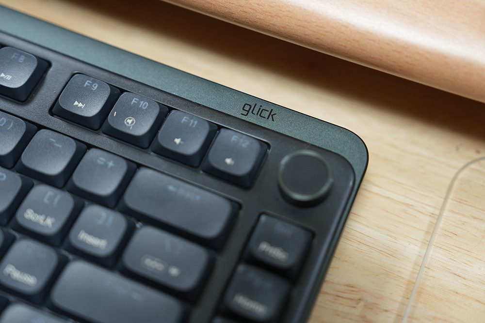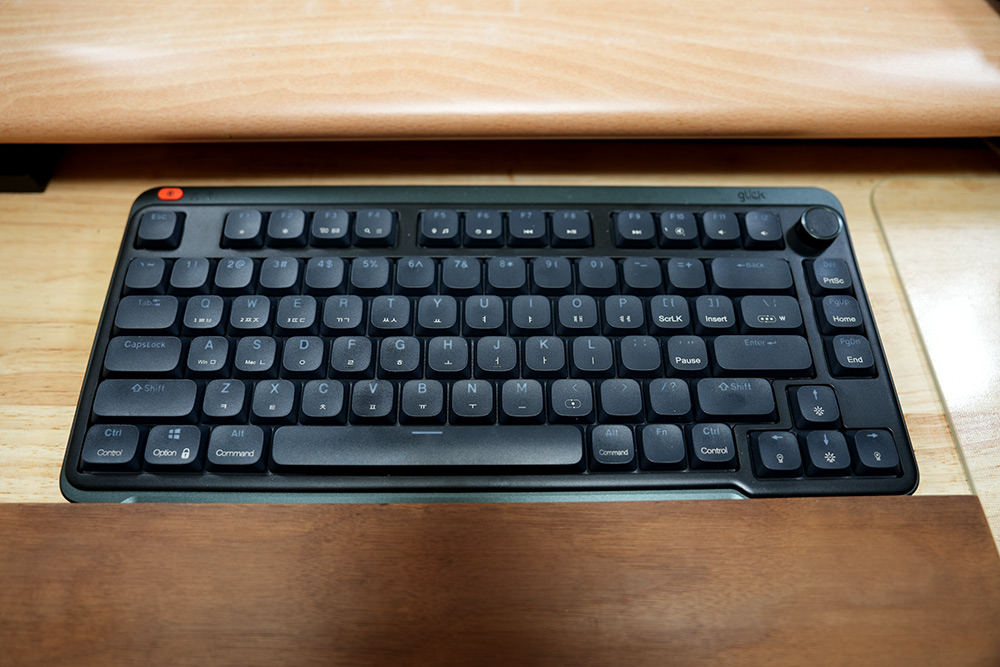 이 키보드 또 괜찮았던 부분이 볼륨 조정 노트가 오른쪽 상단에 위치합니다. 돌릴 때 걸리는 느낌이 있는 형태로 돌아가는 형태인데요. 그리고 덜렁거리지 않고 단단하게 잘 잡혀 있는 형태 입니다. 덕분에 볼륨 조정할 때 편합니다. 볼륨 조정 노브를 꾹 누르면 음소거 및 소리 켜기 모드가 됩니다.