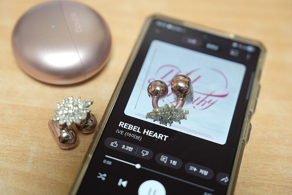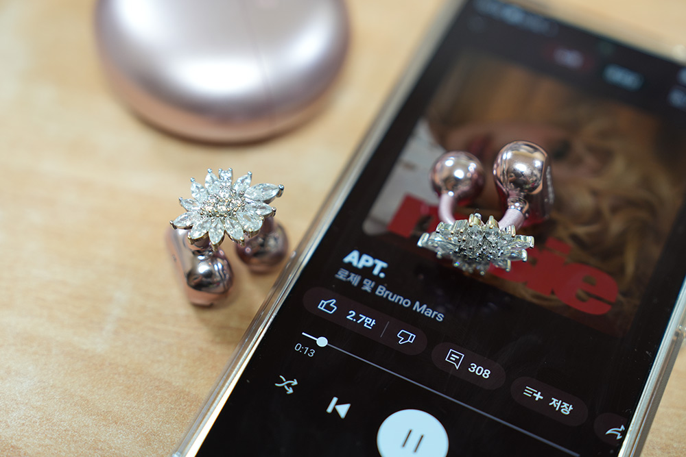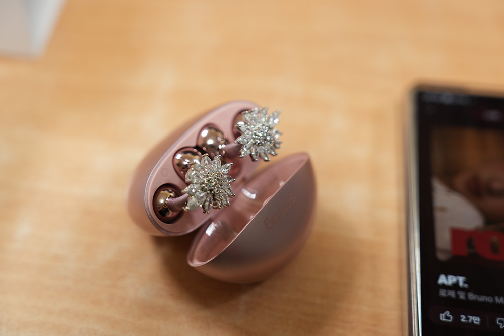블루투스 이어폰도 펄 같은 느낌이 들어가 있어서 생각보다 고급스럽습니다.