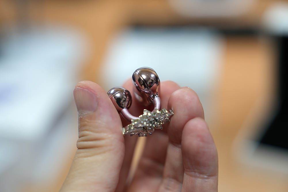 제품 설명 사진에는 보석을 옆으로 돌려서 장착을 해 놨는데요. 근데 그렇게는 안되고 위 사진처럼 방향이 고정되어 장착됩니다. 옆으로 돌려서 고정하려고 해봤는데 U자 모양의 클립이 한쪽은 두껍고 한쪽은 얇아서 얇은쪽으로만 장착이 가능합니다.