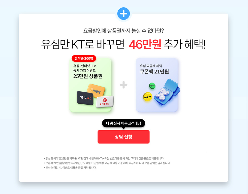 요약하자면, KT 인터넷 가입을 고민 중이라면 지금이 기회예요. KT닷컴 알뜰할인 기획전으로 요금은 낮추고 혜택은 높이고, 통신비 절약 제대로 해보세요!