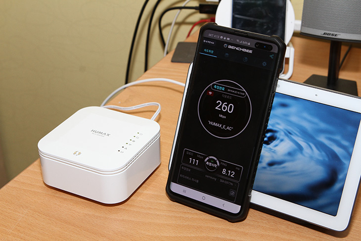 집안 곳곳을 속도 테스트를 해 봤는데요. 대부분의 구간에서 60Mbps 이상 그리고 잘 나오는 구간에서는 200Mbps 이상의 속도로 사용이 가능 했습니다.