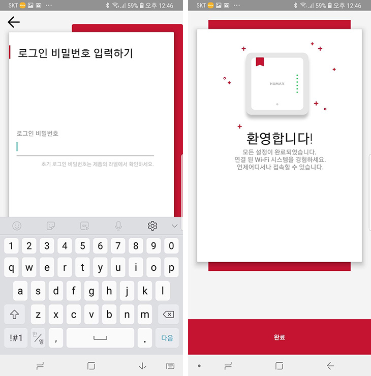 두번째로는 HUMAX WiFi System 앱을 설치를 합니다. QR코드를 이용해도 되고 "HUMAX WiFi System" 를 검색해서 설치해도 됩니다. 검색시 앱이 두가지가 나오는데 빨간색 아이콘의 앱을 설치하면 됩니다.