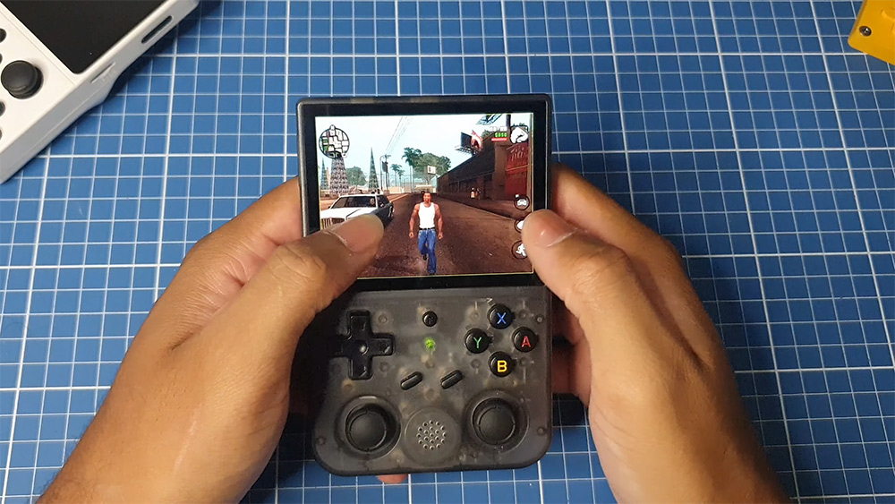 RG353V는 RK3536 쿼드 코어 프로세서를 탑재하여, 어떤 게임도 부드럽게 실행합니다. 또한, 1.8GHz의 높은 클럭 속도는 복잡한 그래픽과 빠른 액션 게임도 손쉽게 처리합니다. GTA 게임도 할 수 있고, 화면이 터치가 가능해서 터치로 조작도 가능합니다.